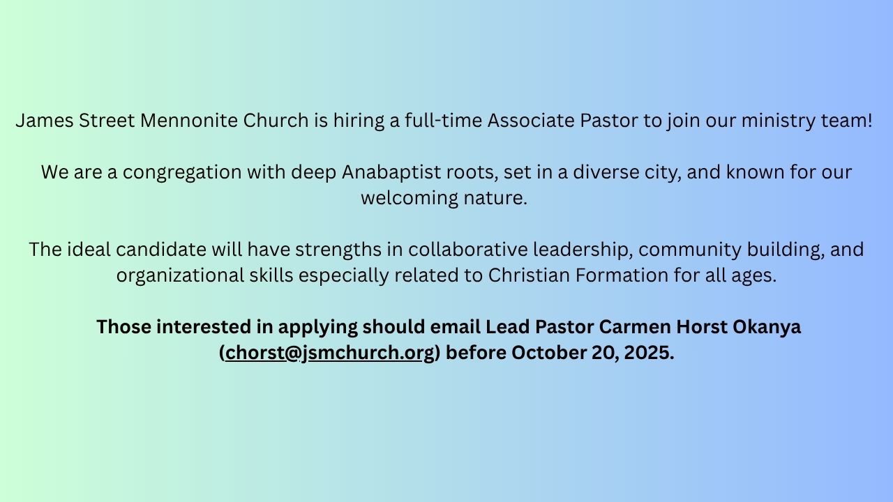 Come join us! Sunday morning worship: 10 AM; Sunday school: 11AM for children, 11:15 for youth and adults.