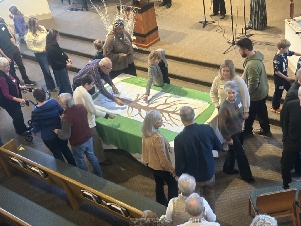 If you are a member who was not able to attend our two covenanting Sundays, you are strongly encouraged to write your name on a paper leaf and put it in the basket to be glued onto the tree. (Or, if needed, email Mary at mlapp@jsmchurch.org and she will write your name on a paper leaf for you.)